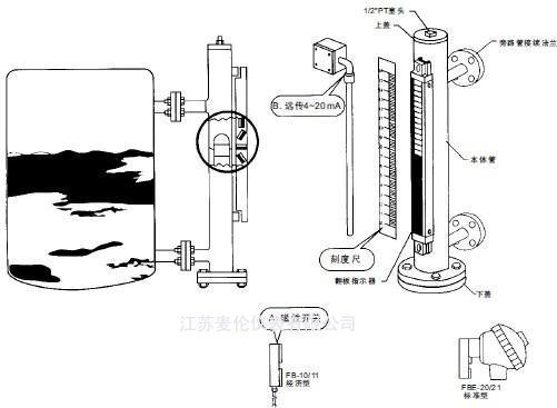 據(jù)此方法操作三次,確屬正常,即可投入運(yùn)行(腐蝕性等特殊液體除外); 應(yīng)根據(jù)介質(zhì)情況,不定期清洗主導(dǎo)管清除雜質(zhì);對(duì)超過一定長(zhǎng)度(普通型>3米、防腐型>2米)的液位計(jì),需增加中間加固法蘭或耳攀作固定支撐,以增加強(qiáng)度和克服自身重量;磁翻板液位計(jì)的安裝位置,應(yīng)避開或遠(yuǎn)離物料介質(zhì)進(jìn)出口處,避免物料流體局部區(qū)域的急速變化,影響液位測(cè)量的準(zhǔn)確性。