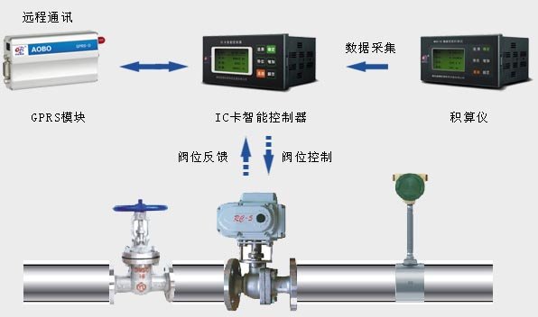 4、IC卡控制箱 5、電動閥門 6、GPRS數據模塊 4+5組成IC卡預付費系統