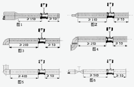 6、傳感器的上、下游應配置一定長度的直管段,直管段的內壁應清潔、光滑,無明顯凸凹、積垢和起皮等現象。其長度應符合圖二的要求。安裝液體傳感器的附近管道內,應充滿被測液體。