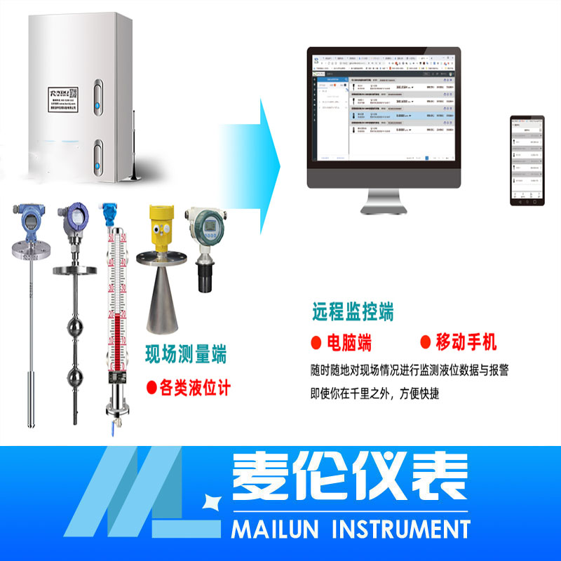 現場測量端。配置: 1. 液位計(包含壓力儀表,液位儀表,溫度儀表) 2. 信號采集儀表表箱 (普通型和防爆型可選) 3. 儀表箱內含RZ-1806J開關量采集模塊 4. 儀表箱內含RZ-G802 DTU模塊 |