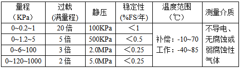 測量范圍:0~0.2~1000KPa 量程連續可選