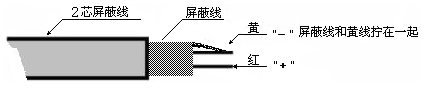 紅色芯線接XPS的+端,屏蔽線和黃色芯線擰在一起接-端,探頭接線板+端和-端與之對應連接;