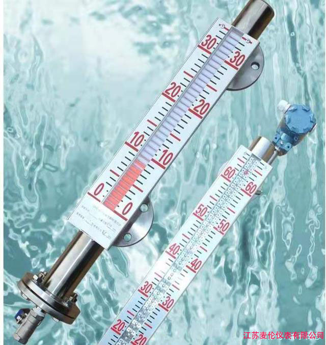 磁翻板液位計 紅色帶(或綠色帶)的高度就是被測液面的高度,實現(xiàn)了測量和顯示被測液(界)面位置的目的。