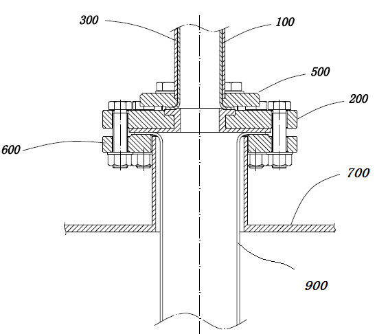 但受限于浮筒形狀、尺寸以及內(nèi)襯材料的尺寸和特性影響,該翻折部的翻邊密封面無法做到很大,加上容器開口通常是大于該翻折部所覆蓋的區(qū)域,因此造成了容器開口與翻折部以外的金屬面(如法蘭的表面)相通,從而容易導(dǎo)致這些金屬面受腐蝕,極易造成生產(chǎn)安全事故,給生產(chǎn)帶來麻煩。