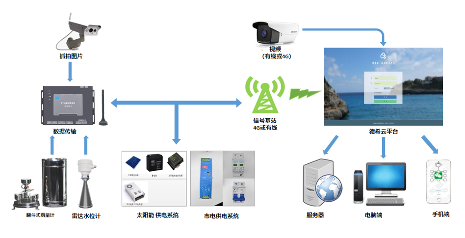 系統(tǒng)概述:水庫河道生態(tài)流量監(jiān)測系統(tǒng)適用于遠(yuǎn)程監(jiān)測河流、水庫等的實(shí)時水雨情狀況,管理部門可通過該系統(tǒng)及時掌握河流的降水、斷面水位等流域水文狀況,從而及時作出管理決策。