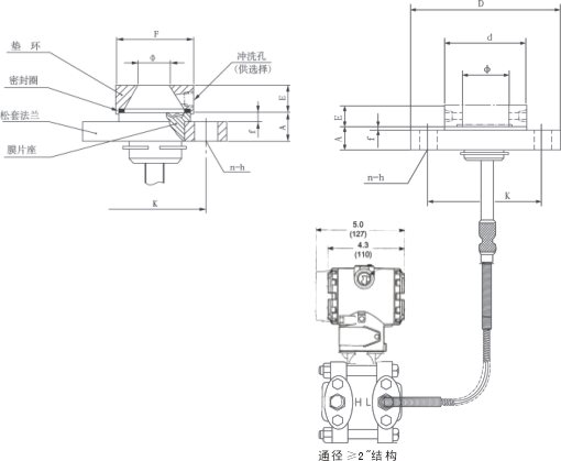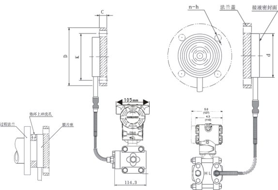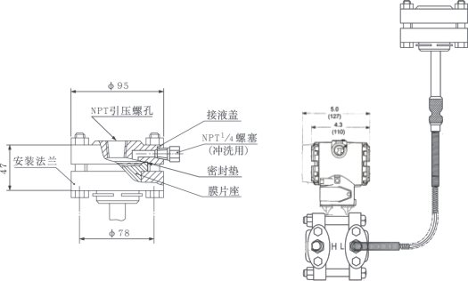 6、在測量氣體的壓力時,取壓口要開在流程管道的**,且法蘭液位變送器也要安裝在流程管道的上部以便讓沉積的液體快速注入到流程管道中。